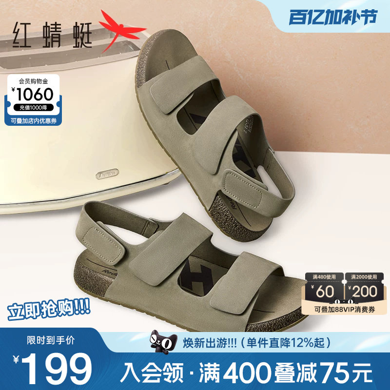 Red Dragonfly Birkenstock Sandals 2026 Summer New Men's Shoes Genuine Leather Men's Leather Sandals Casual Cowhide Slippers Wear Outside