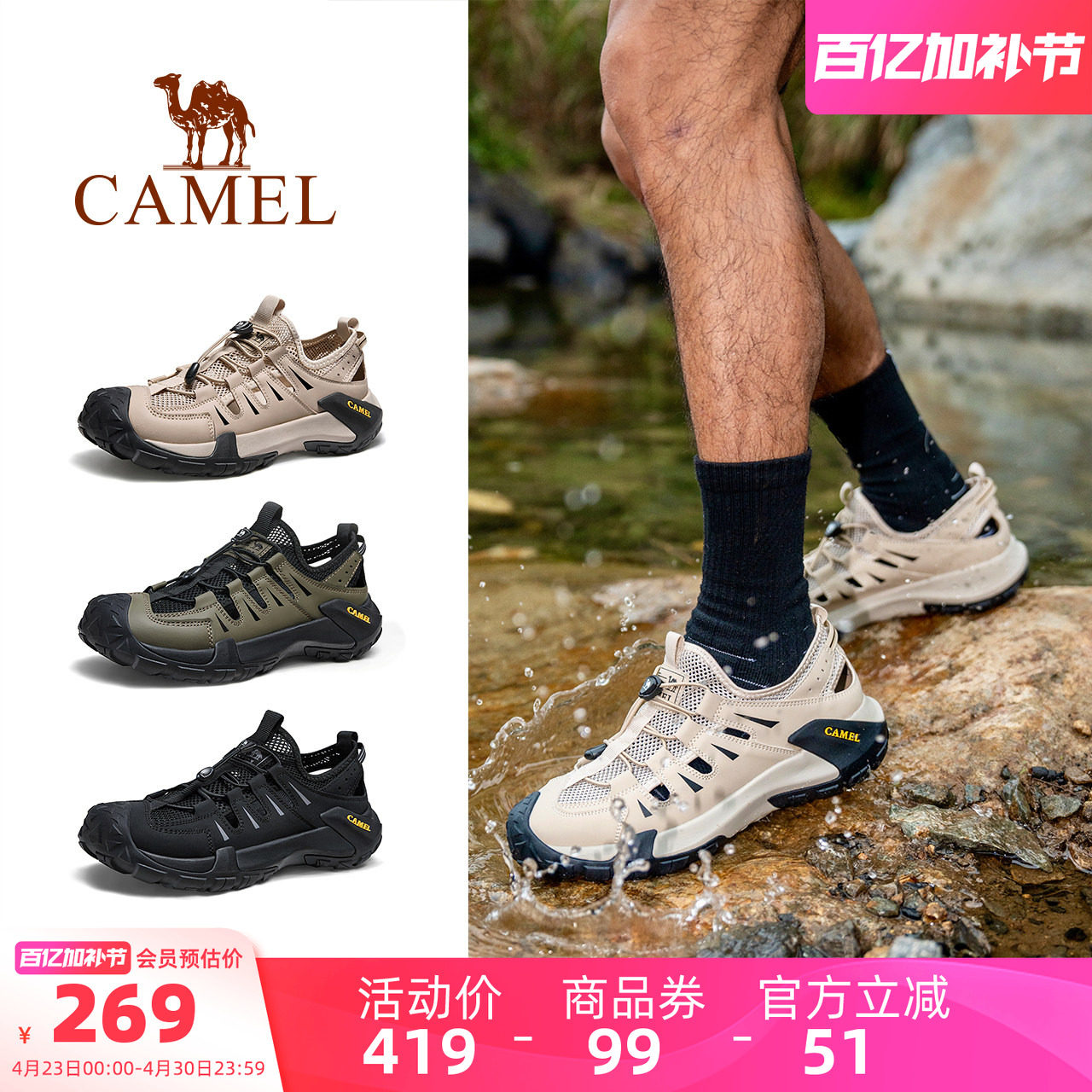 Camel men's shoes sandals 2026 summer new mesh outdoor leisure sports hiking shoes non-slip breathable river tracing shoes
