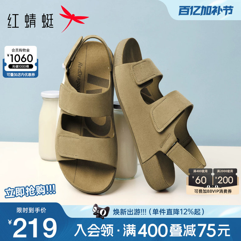 Red Dragonfly Men's Sandals Summer New Fashion Platform Velcro Birkenstock Men's Shoes Leather Dad Slippers Men's Style