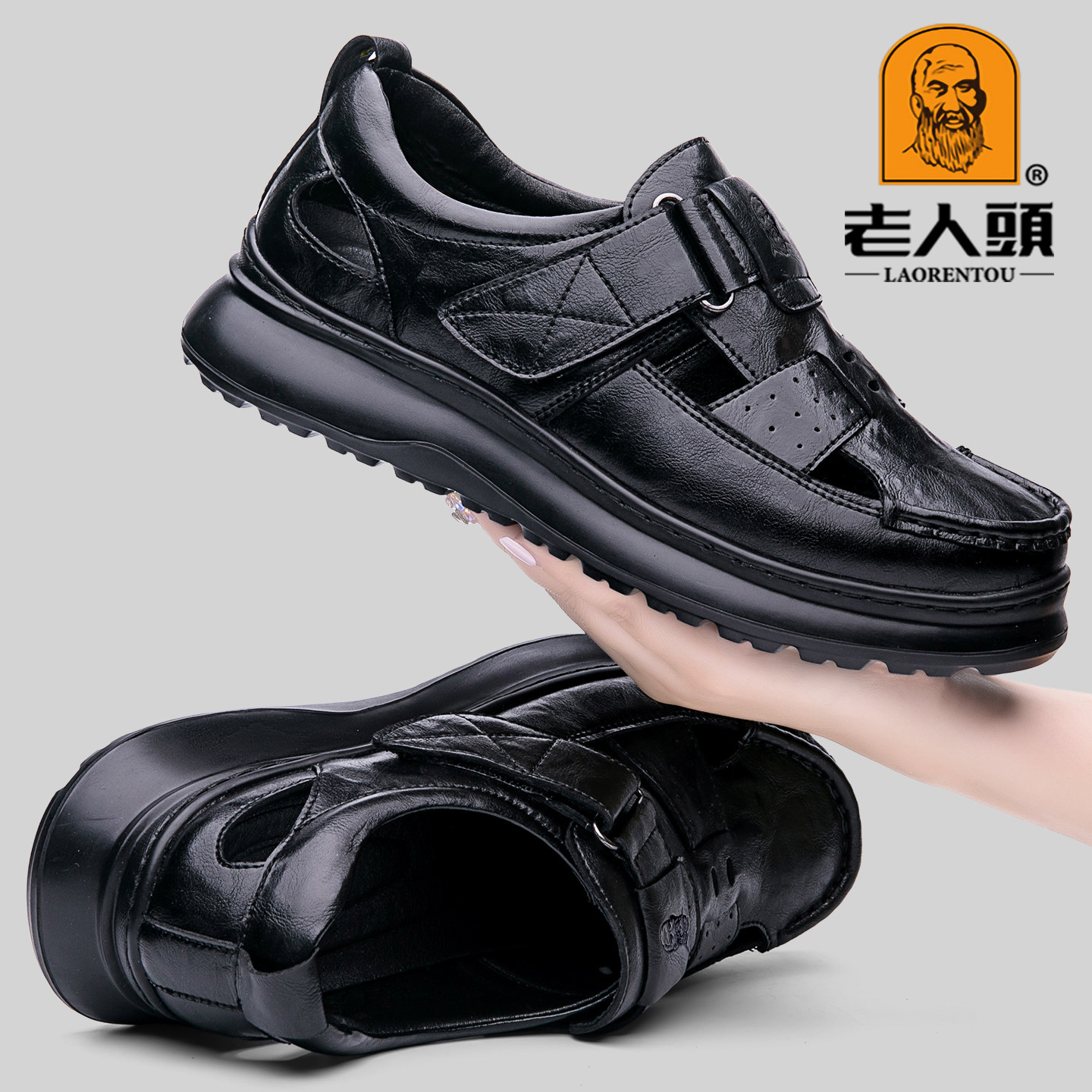 Elderly head men's shoes hollow breathable hole sandals 2026 summer new top-layer cowhide non-slip soft-soled dad shoes