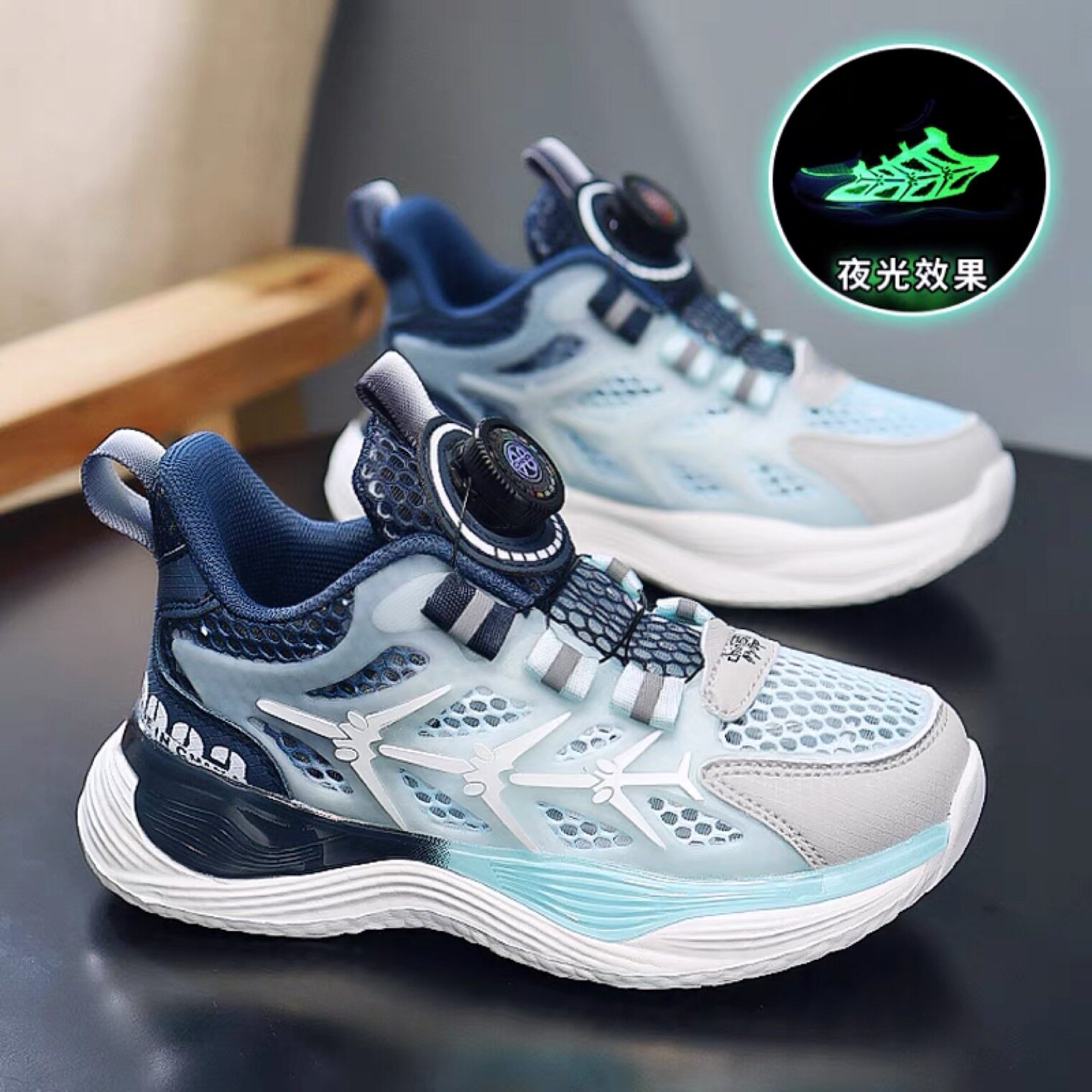DEKNIKEUP Boys' Glow-in-the-Dark Shoes 2026 New Summer Youth Button Breathable Single Net Basketball Sneakers