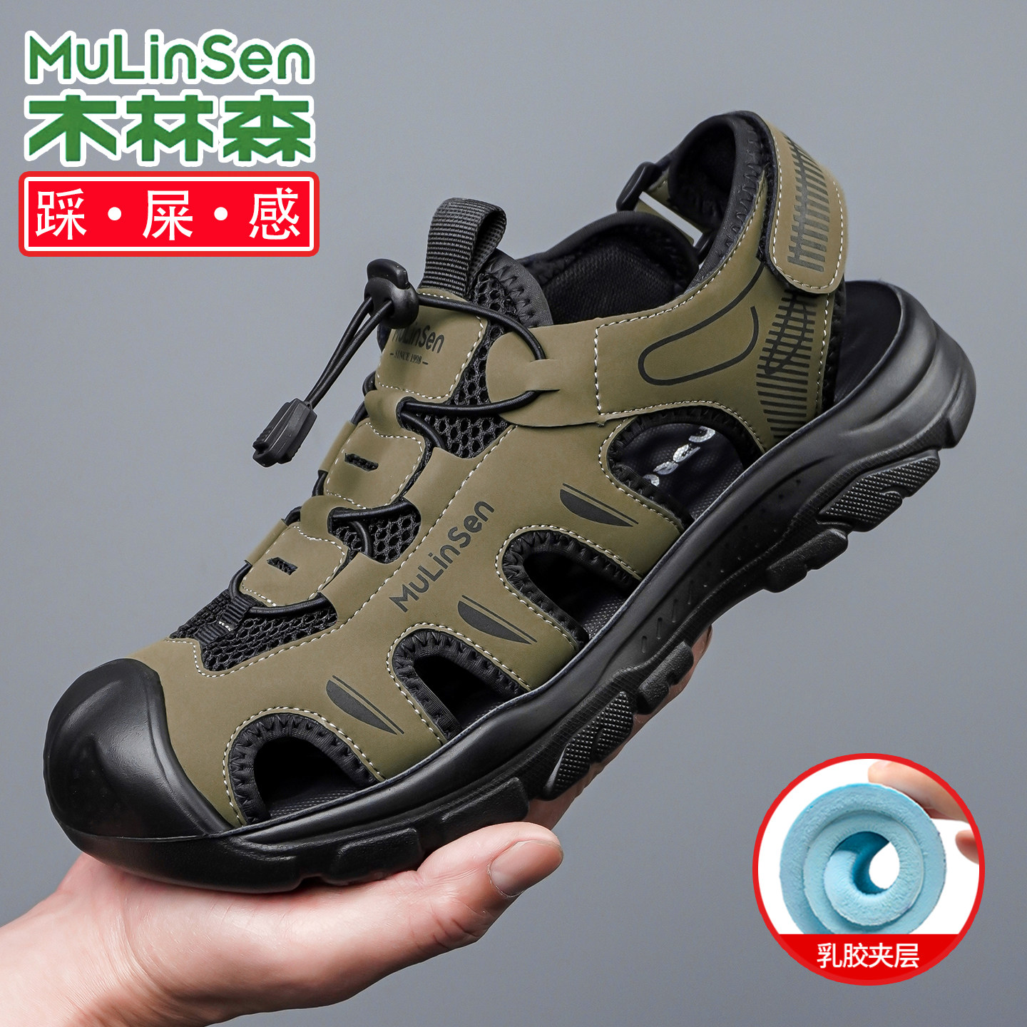 Mulinsen Baotou Men's Sandals 2026 Summer New Mesh Breathable Soft Sole Outdoor Hiking Cave Shoes