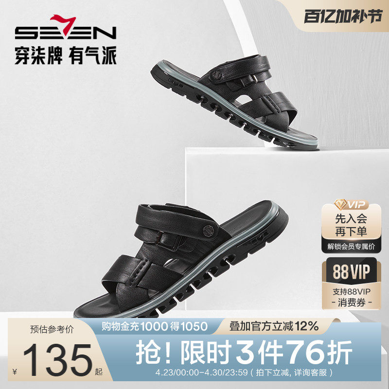 Qipai Sandals Men's 2026 New Leather Beach Shoes Wear Flat Casual Shoes and Dual-purpose Sandals in Summer