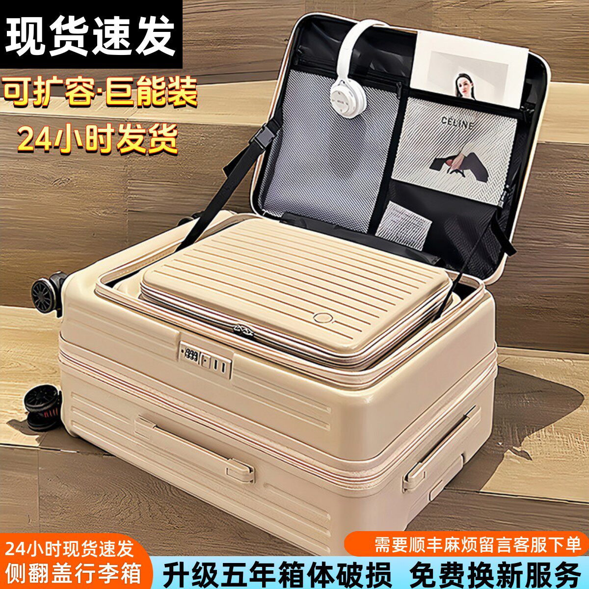 Super large capacity new multi-functional side opening luggage women's 20-inch extended boarding suitcase men's trolley suitcase suitcase