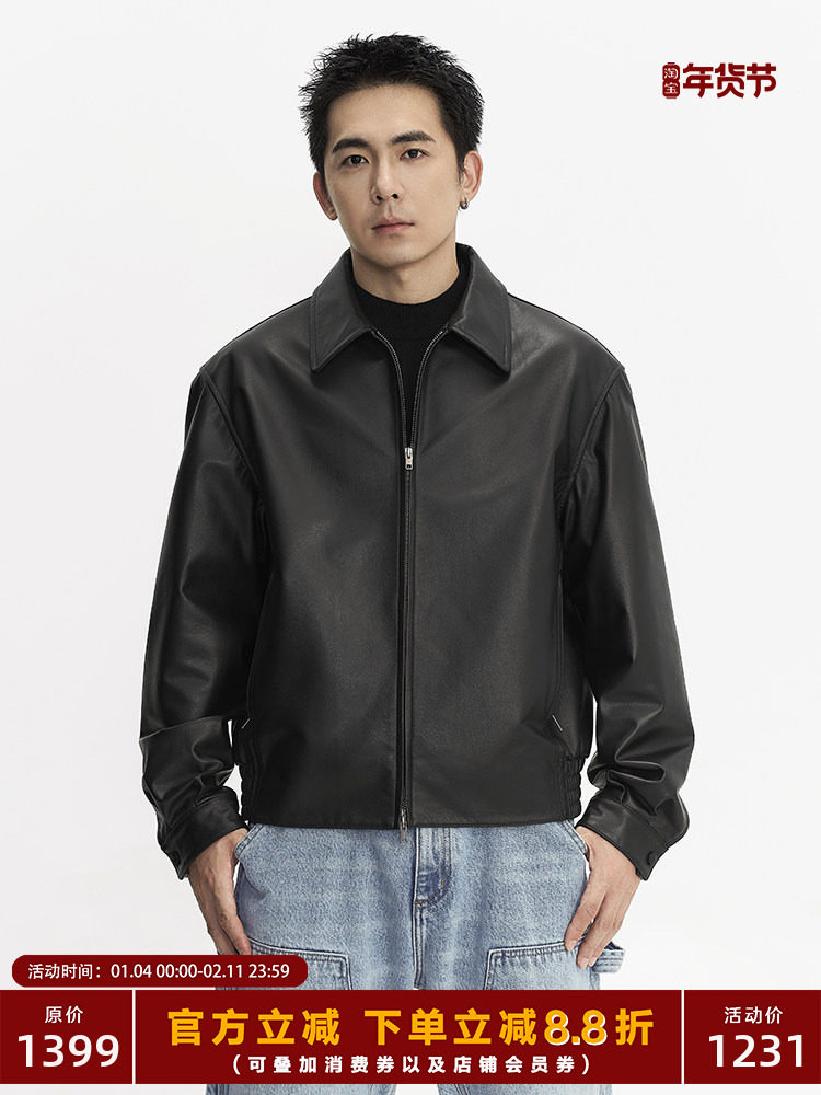 Toptier Bro Genuine Leather Jacket for Men, Natural Grain Full-Grain First-Layer Cowhide, Simple Short Jacket