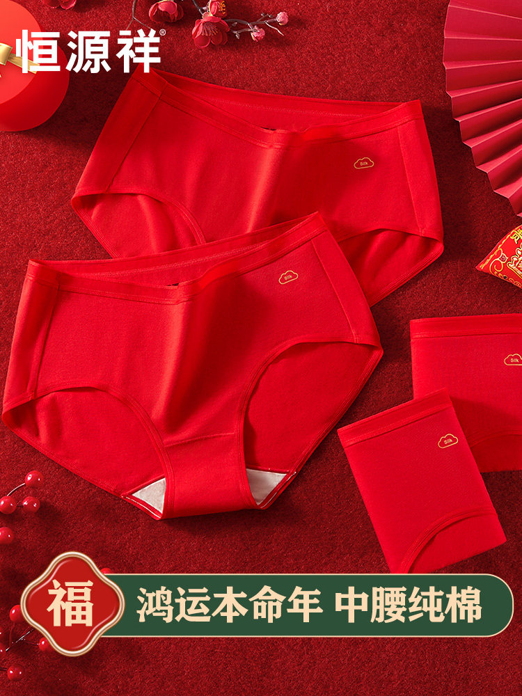 Hengyuanxiang Zodiac Year Red Underwear for Men and Women, Pure Cotton Antibacterial Shorts, Red Briefs, Women's Wedding Pants for the Year of the Snake