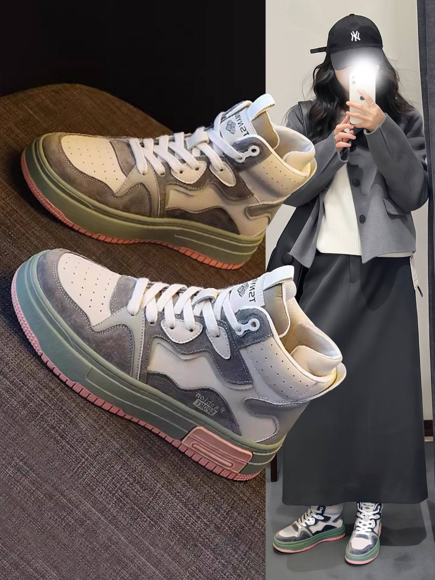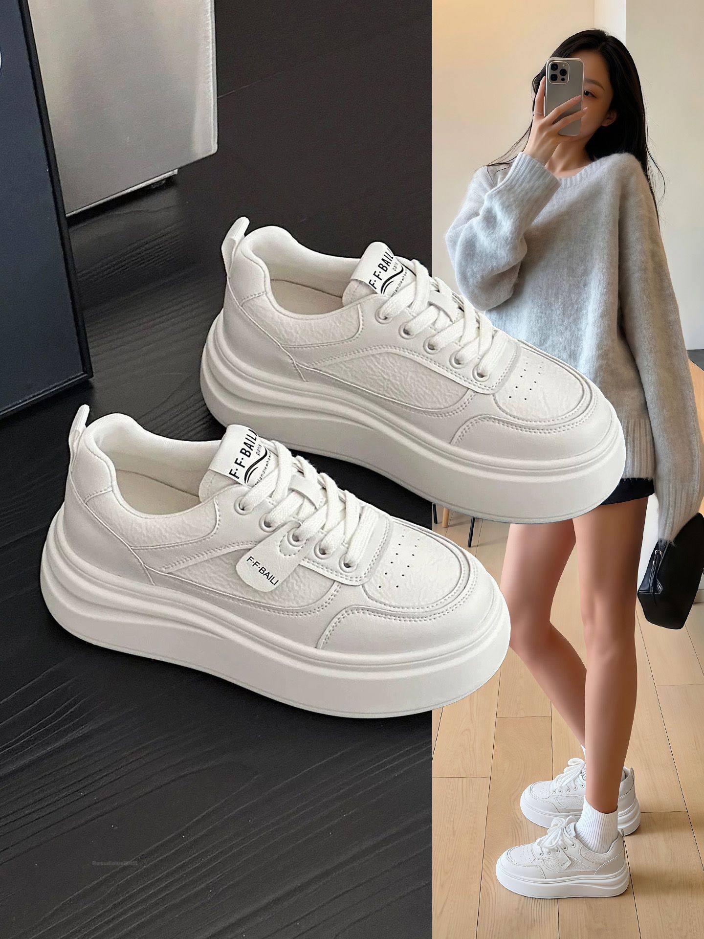 2026 Spring New Thick-Soled White Sneakers for Women Versatile Lace-Up Fashion Casual Shoes Trendy Shoes Sports Shoes