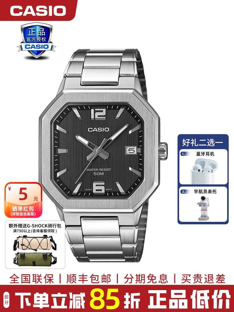 Casio Unisex Watch, Simple Retro Small Square Fashion Business Waterproof Watch Mtp-B195