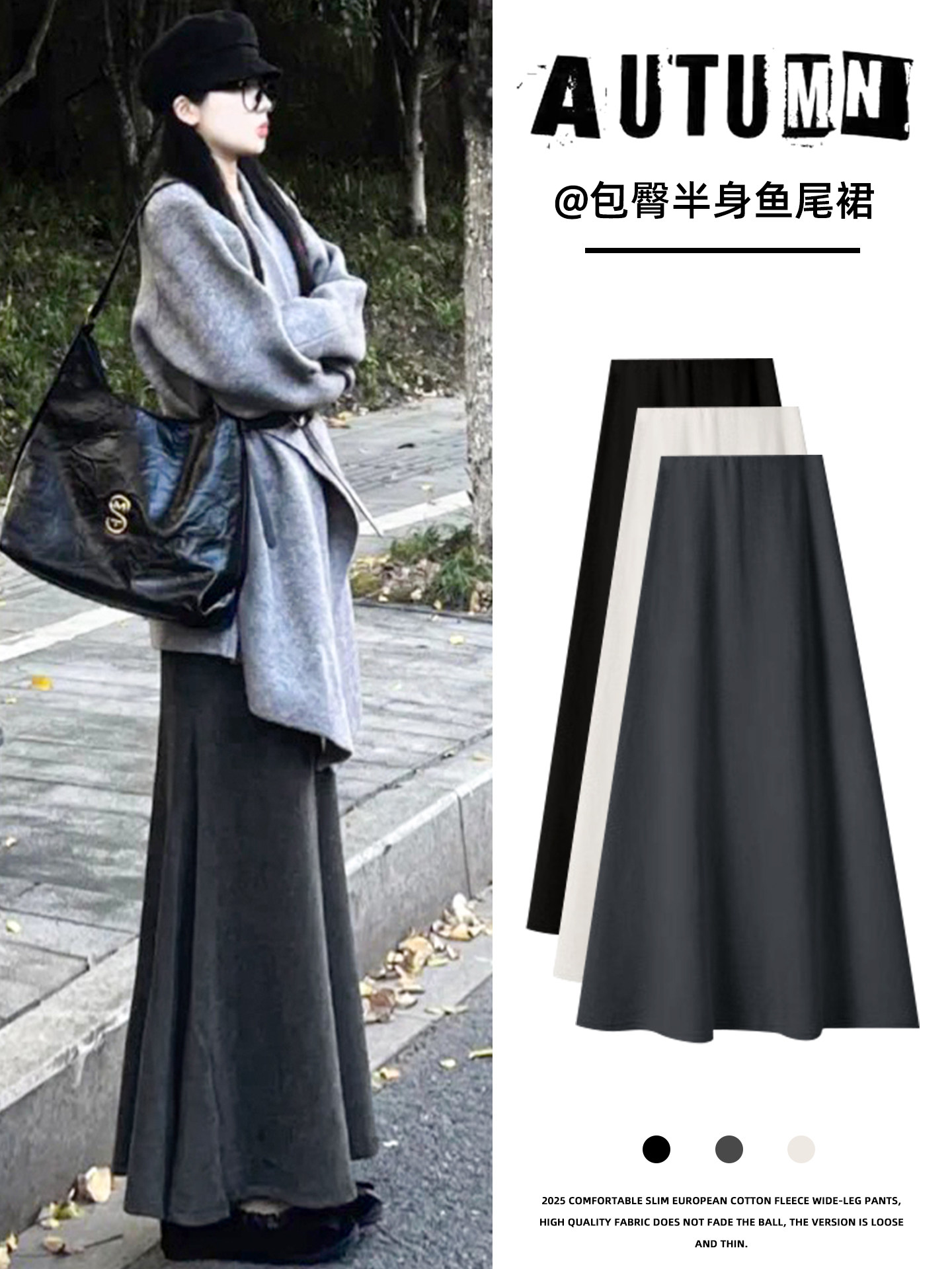 Dark Gray Fishtail Skirt for Women, Autumn 2025 New Style, High-Waisted, Slimming A-Line Midi Skirt, Petite Knitted Bodycon Skirt