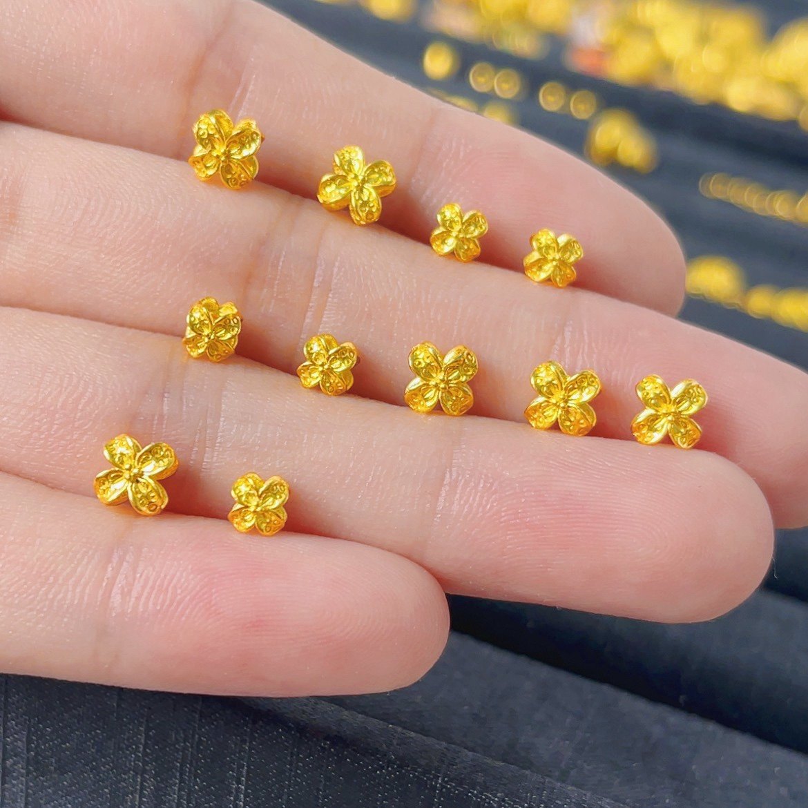 Pure Gold 999 Four-Petal Osmanthus Gold Spacer Beads for Women, Pure Gold Loose Beads, DIY Flower Spacer Beads, Pearl and Jade Bead Accessories
