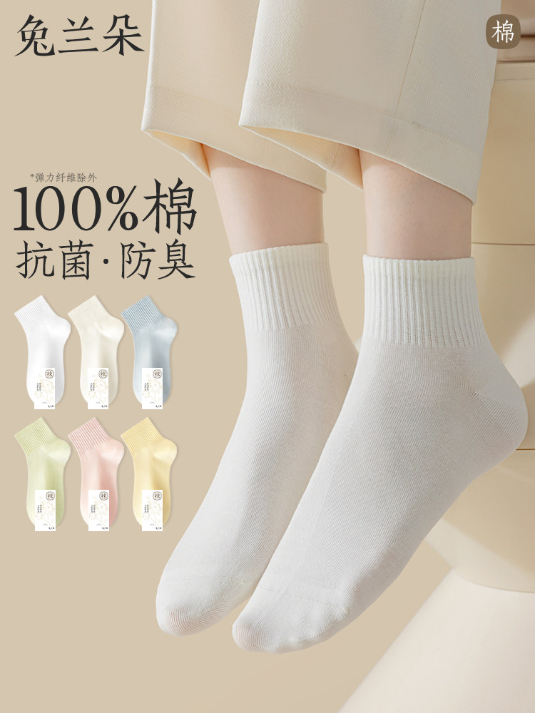 100% Genuine Pure Cotton Socks for Women, Spring and Autumn Mid-Calf Socks, White Socks, Odor-Resistant, Sports Autumn and Winter Style, Seamless Short Socks for Women