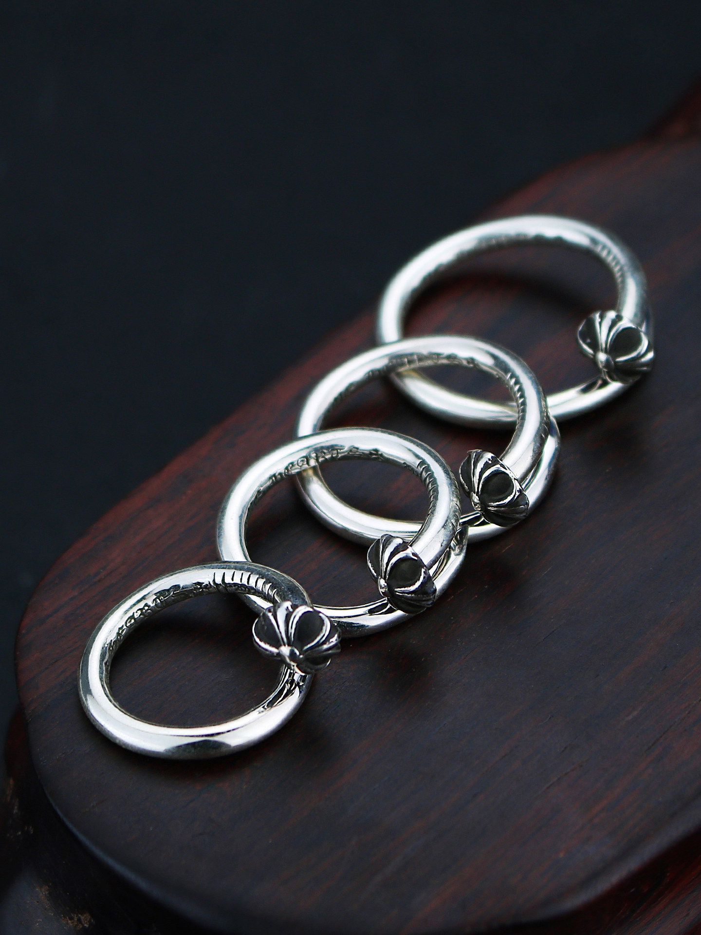 Sterling Silver Cross Flower Round Head Nail Ring for Men and Women, Vintage American Style Cross Punk Style, Adjustable Open Ring