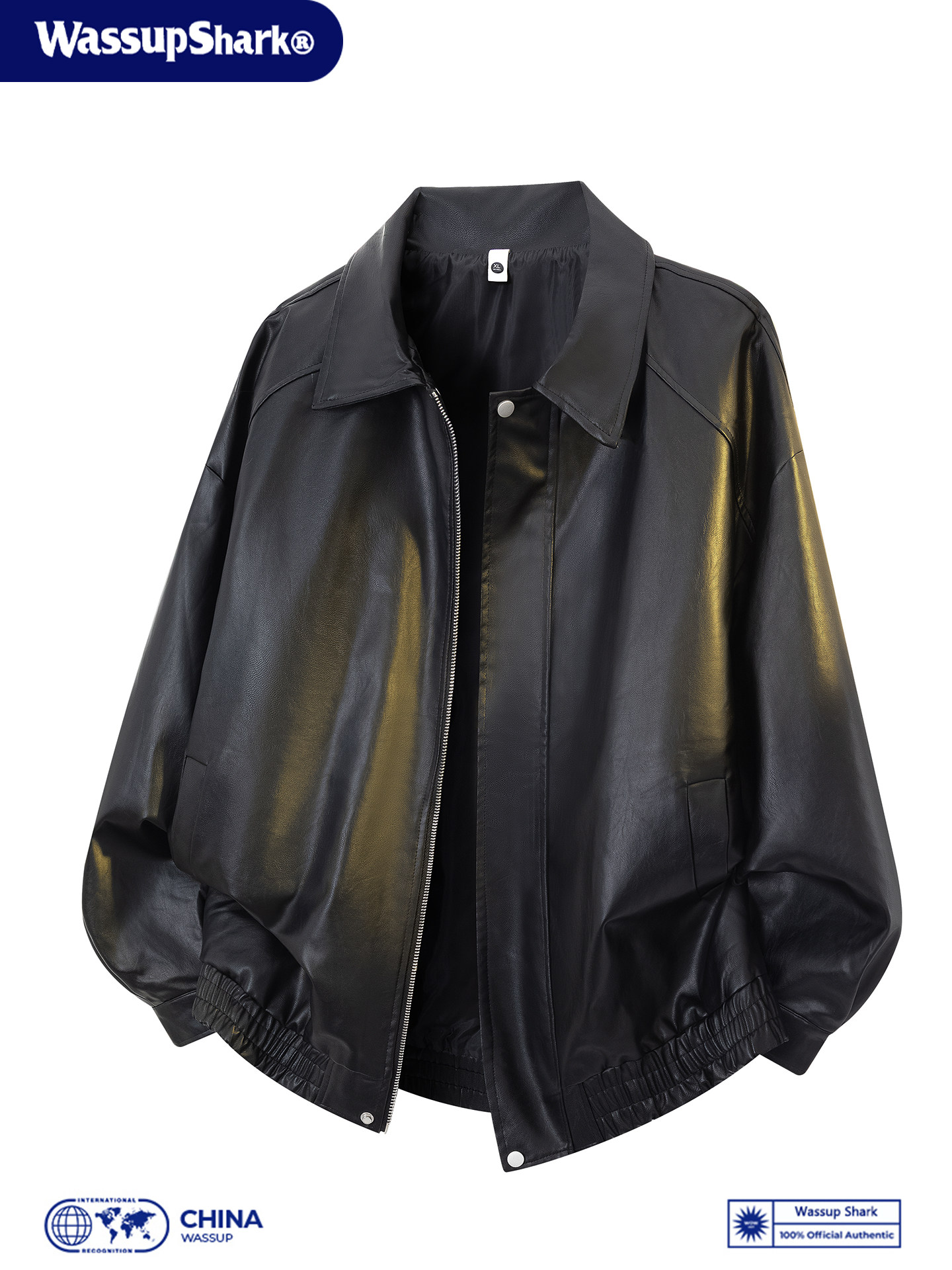 Wassup Shark American Retro Leather Jacket for Men, Spring and Autumn, Loose Casual Couple's Biker Jacket, Cool and Stylish