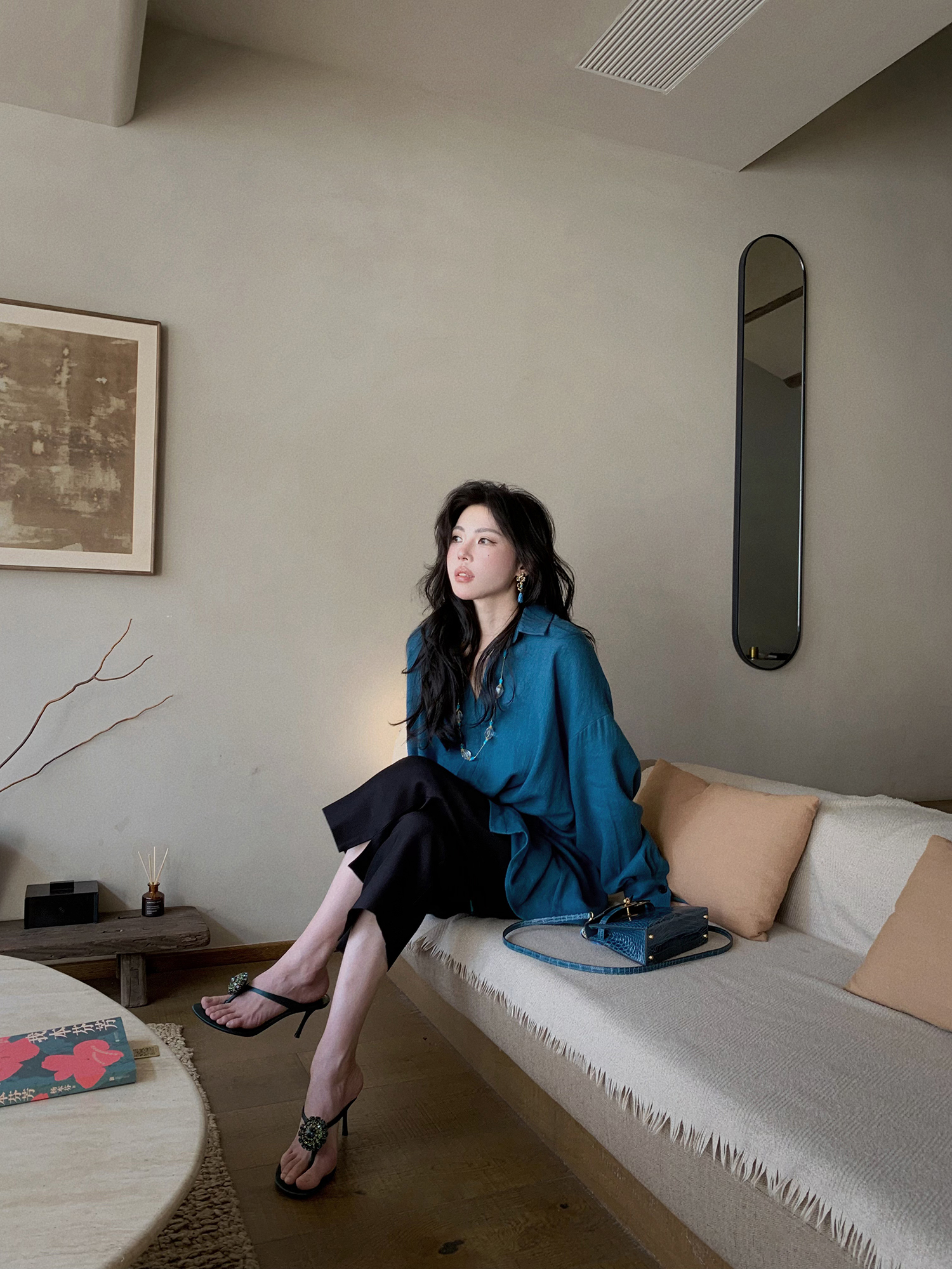 Bai Jingting and Sang Yan's Same Style Black Shirt for Men, High-End, Cool and Handsome Long-Sleeved Shirt, Suitable for Wearing under a Suit or as a Jacket