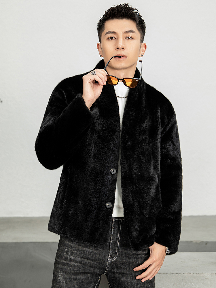 Imported Baojiamei Genuine Mink Fur Coat for Men, Whole Mink, Real Mink Fur, V-Neck Cardigan, Short Robe, Haining