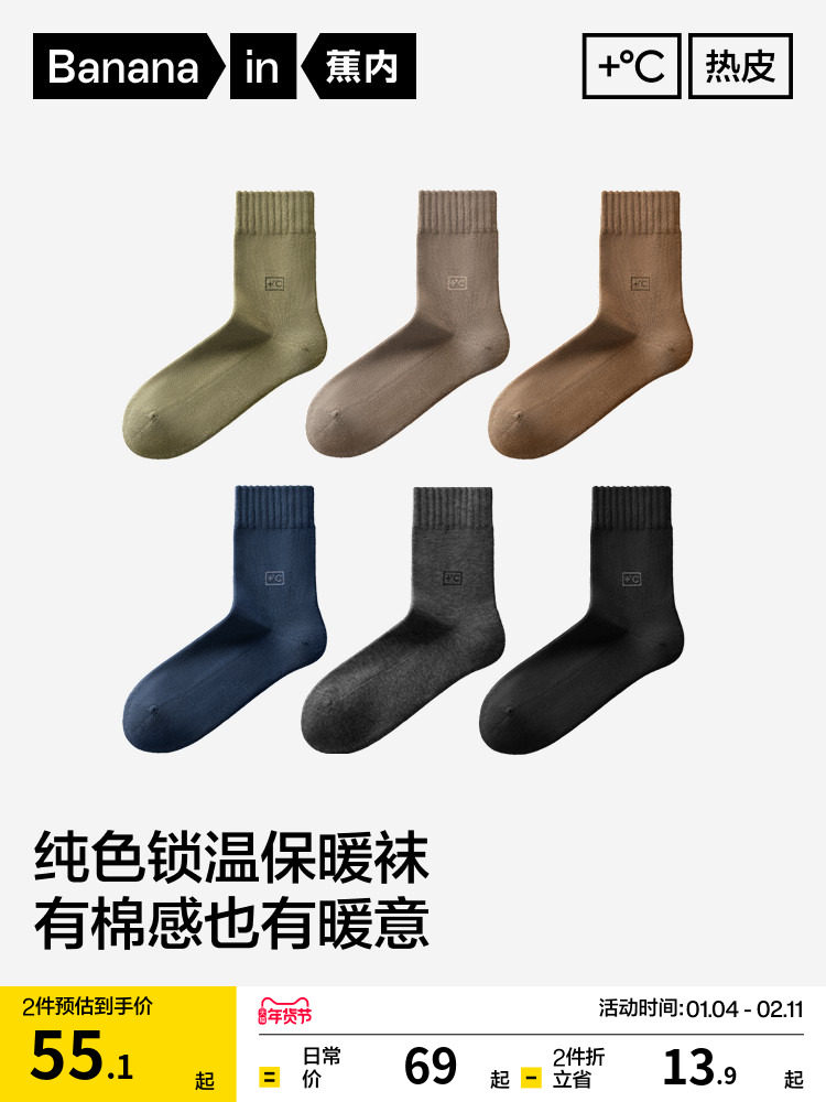 Beeff 90%+ Merino Wool Mid-Calf Socks, Men's and Women's Socks, Couple's Autumn and Winter Warm Socks, Red, Black, White