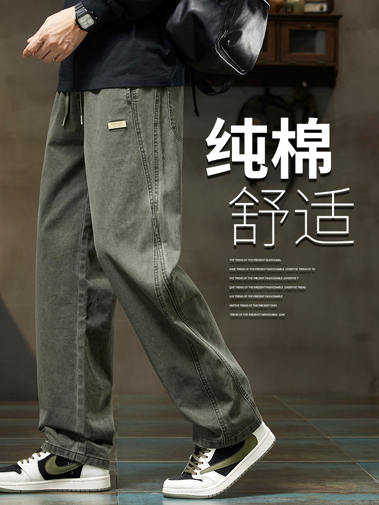 Men's Pure Cotton Casual Pants, Winter Straight-Leg 2026 New Sweatpants, Youth Fleece-Lined Work Pants, Men's Autumn and Winter Style