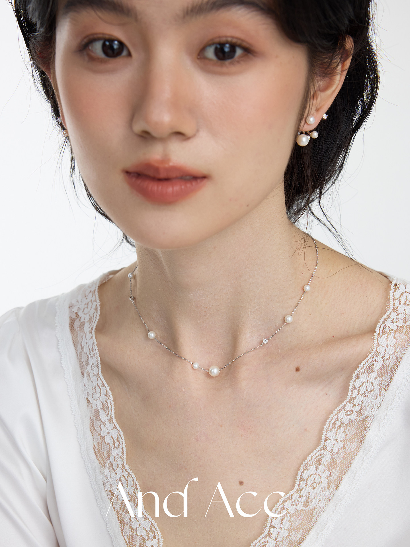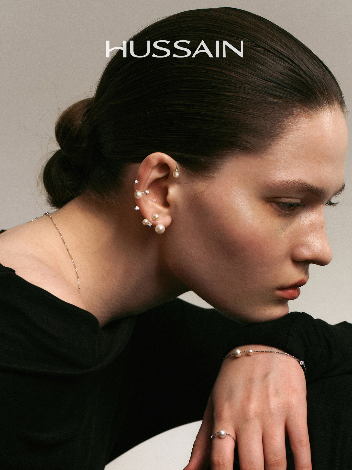 [Official Genuine] Hussain Star Dot Floating Pearl Earrings Sterling Silver Asymmetric Autumn and Winter Earrings