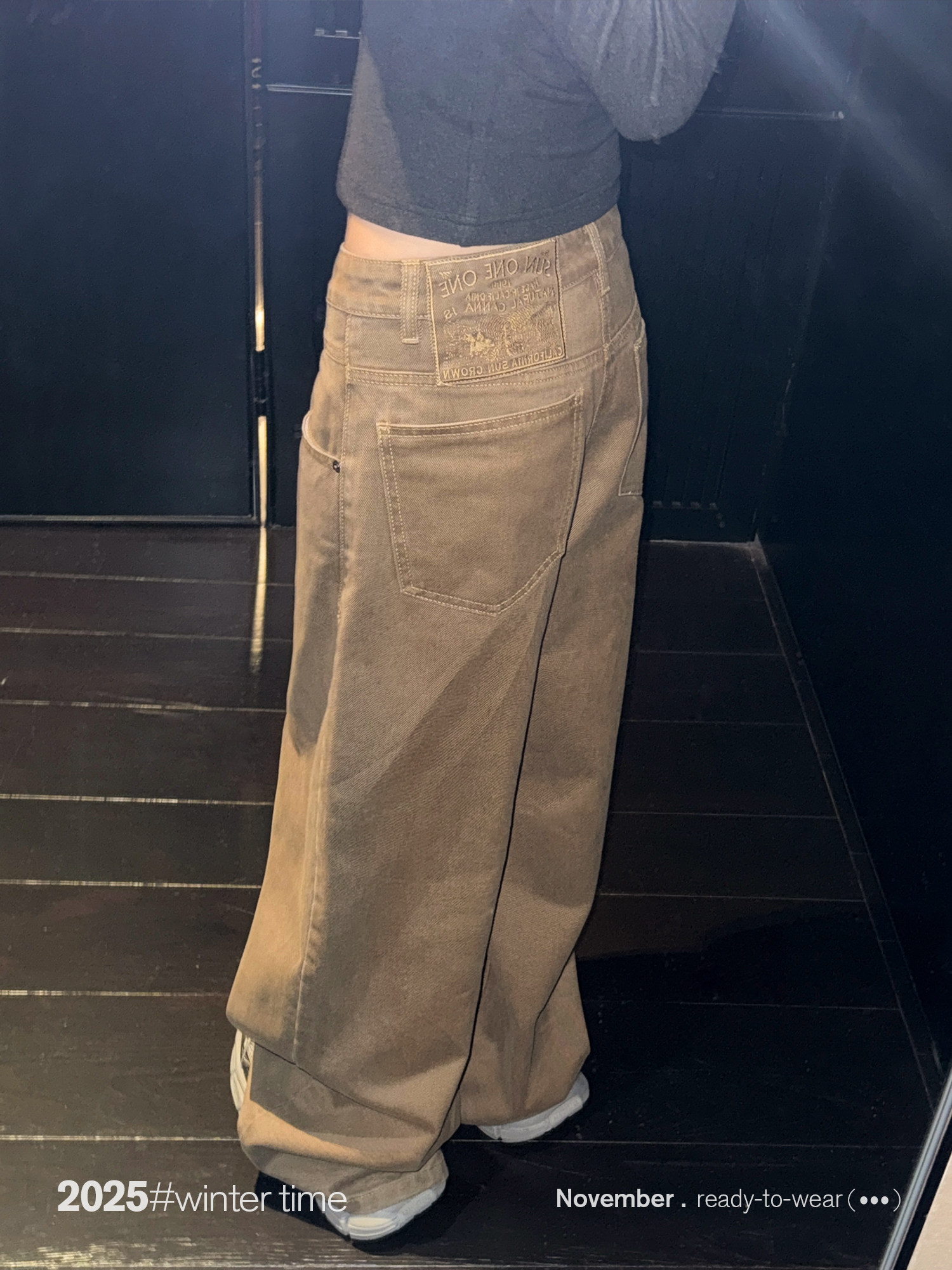 Sunoneone Embroidered Logo Series H2 American-Style Low-Waist Fleece-Lined Straight-Leg Jeans for Women, Autumn and Winter Wide-Leg Casual Pants