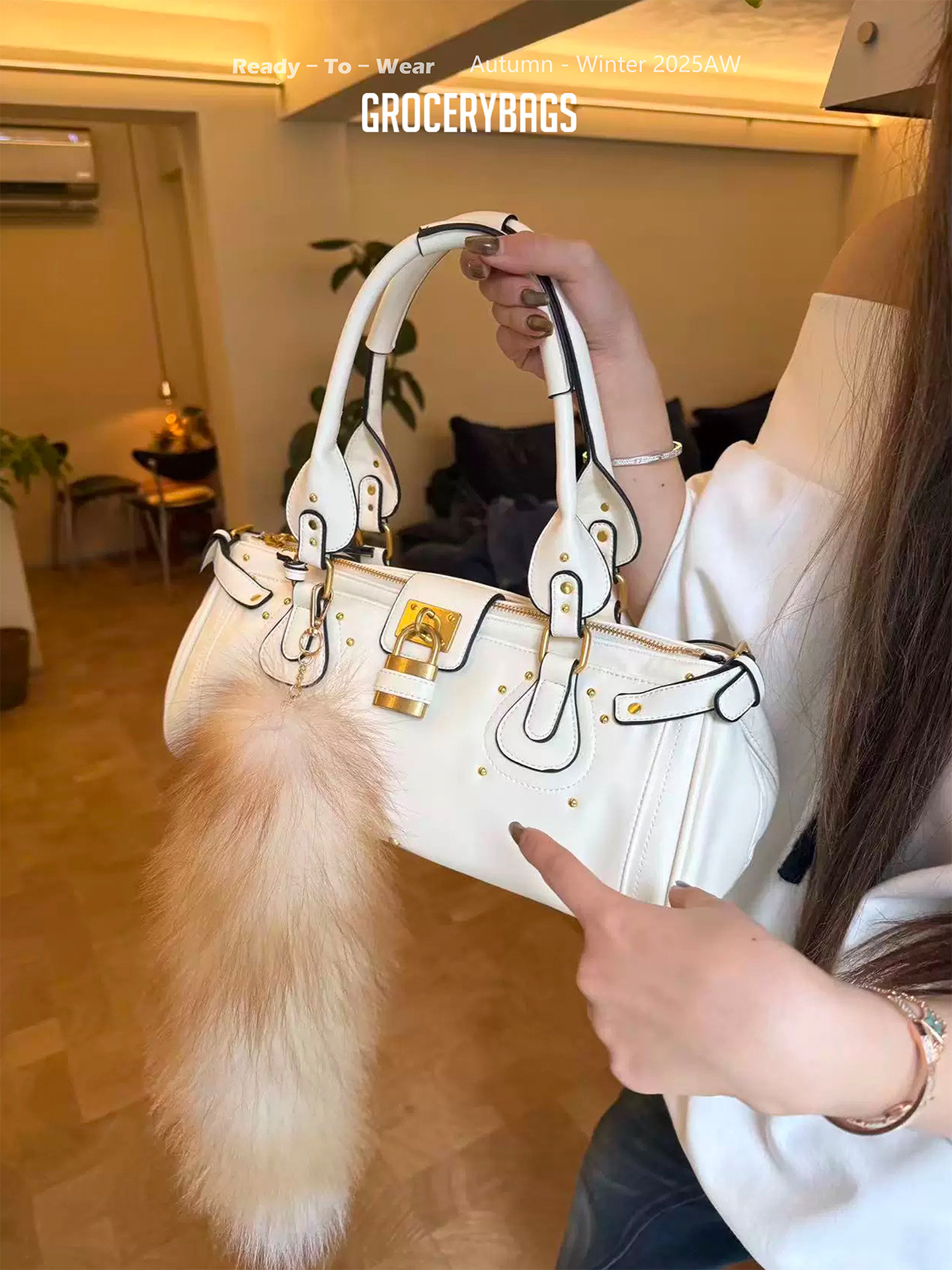 Hunter2025 Autumn and Winter Unisex Plush Two-Tone Shoulder Strap Casual Bucket Bag Single Shoulder Crossbody Backpack