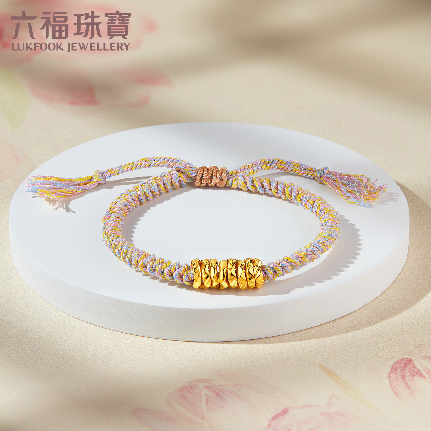 Lukfook Jewelry Gold Bracelet for Women Everyday Wear 5D Hard Gold Braided Bracelet with Gold Nuggets G38A0001Ds