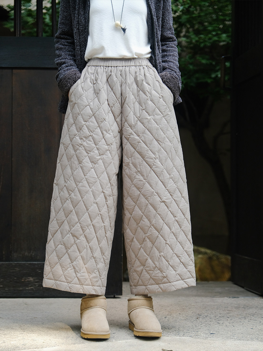 [Free Pants Alteration] We11Done Unisex Letter Logo Print Charcoal Gray Elastic Waistband Pants