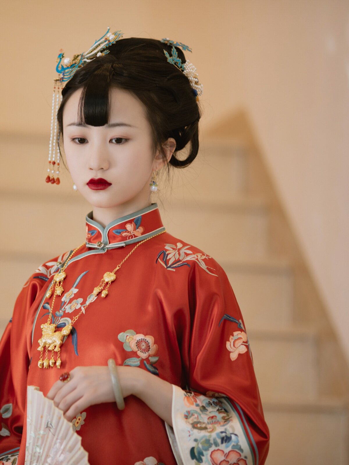 Zhengfangchun | a City of Wind and Snow | Traditional Retro Stand-Up Collar, Buttoned Embroidery, Floral Toast Dress, Loose Engagement Cheongsam Dress