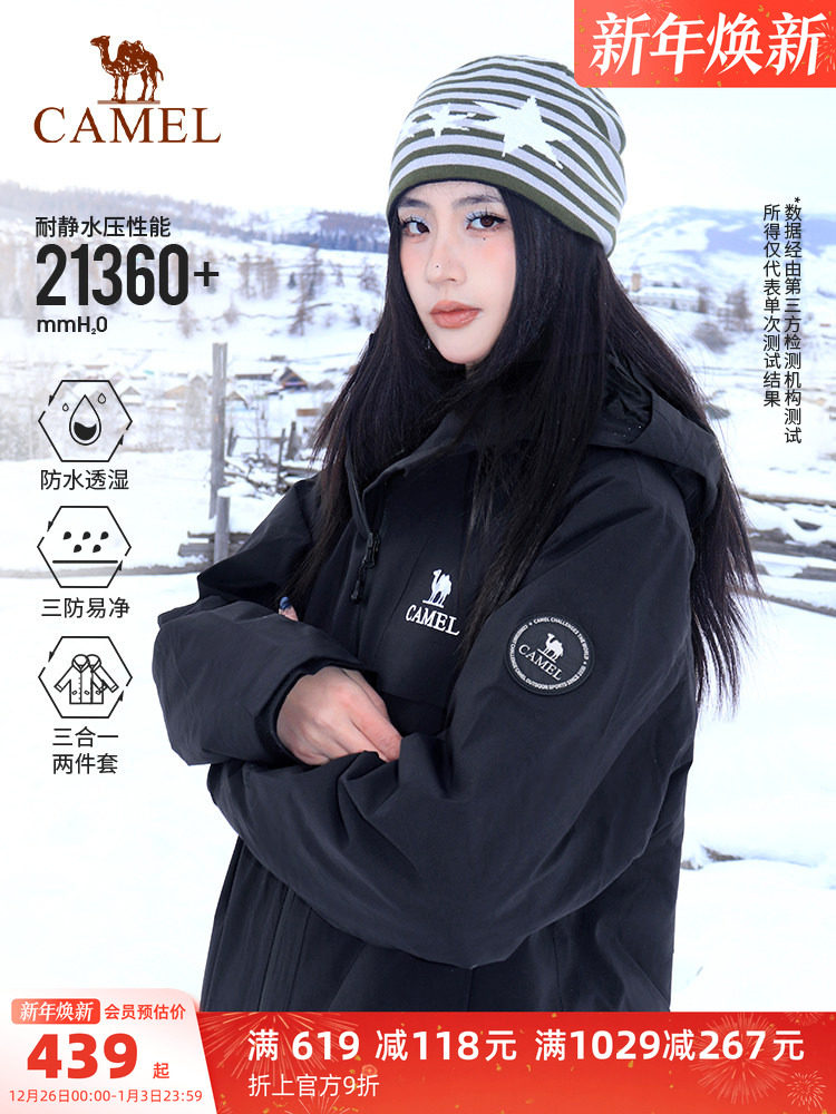 Camel Rain God Jacket Men's and Women's 3-in-1 Fleece down Jacket with Inner Liner Windproof Waterproof Coat Ski Jacket Winter