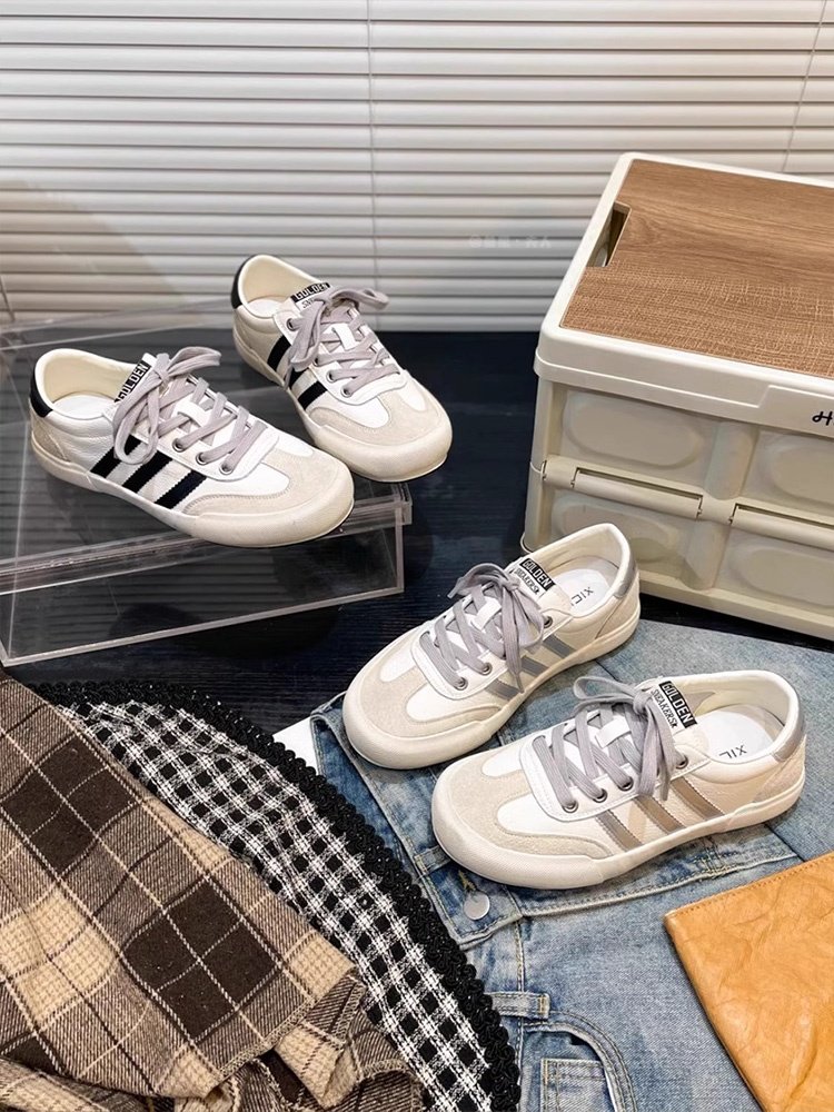 Sanli Genuine Leather Retro Distressed Flat Sneakers for Women 2026 Summer New Casual German Training Shoes Non-Slip Trendy Sneakers