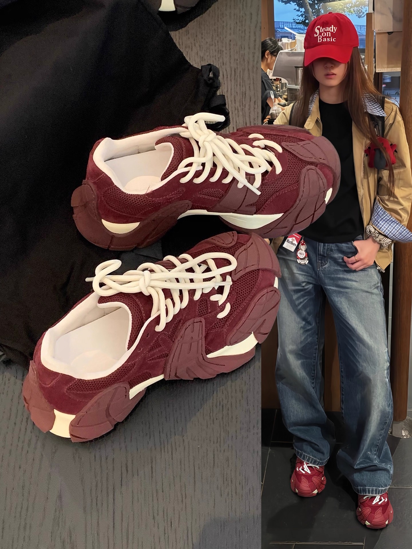 Hong Kong Thick-Soled Height-Increasing Dad Sneakers for Women 2025 Autumn Melard Retro Fashion Lightweight Casual Sports Shoes