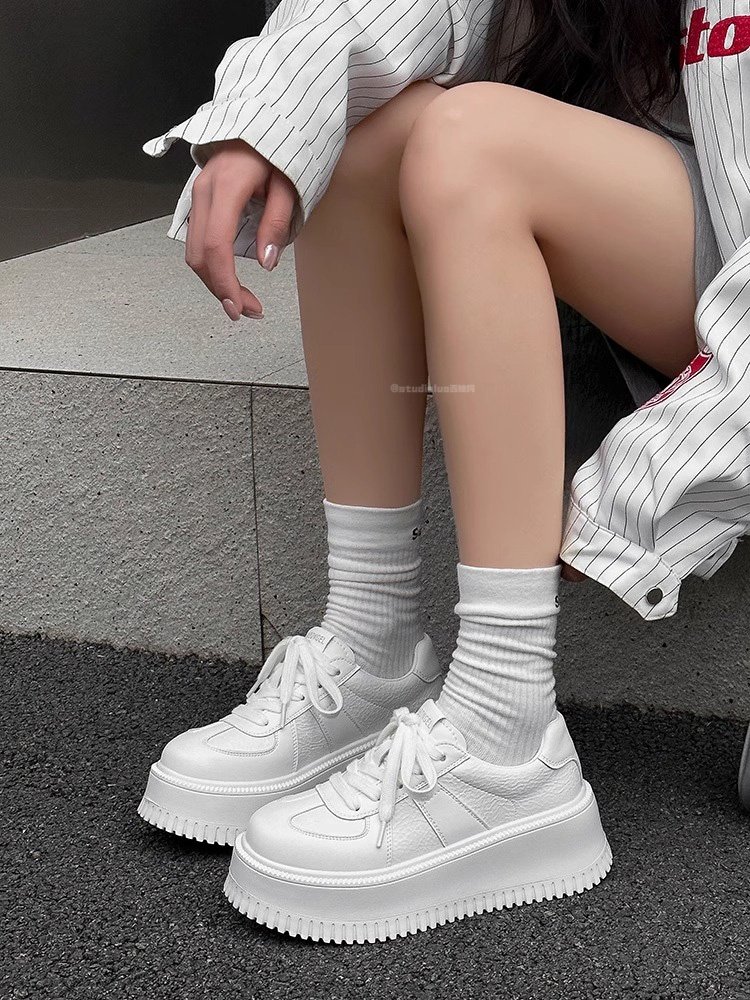 Hong Kong Genuine Leather Platform Thick-Soled White Sneakers for Women 2025 Spring and Autumn New Leopard Print Lace-Up Comfortable Casual Versatile Sneakers
