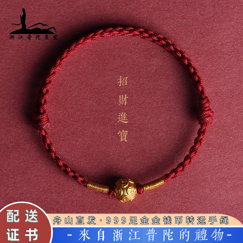 999 Pure Gold Money Coin Red String Bracelet for Men and Women, Snake, Horse, Sheep Zodiac Year, Peace and Luck Bead Woven Bracelet