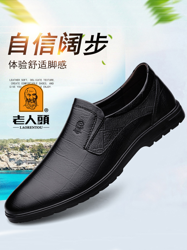 Elderly Men's Casual Leather Shoes, Genuine Leather Soft-Soled Slip-On Loafers, Business Casual Middle-Aged Dad Shoes, Trendy