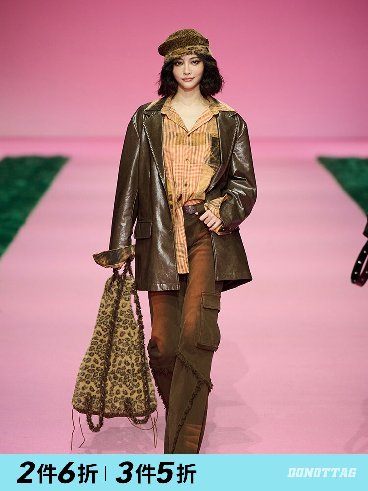 【Showcase Style】Dnt/Han Huohuo Vintage Oversized Solid Color Pu Blazer Textured Leather Jacket New Style
