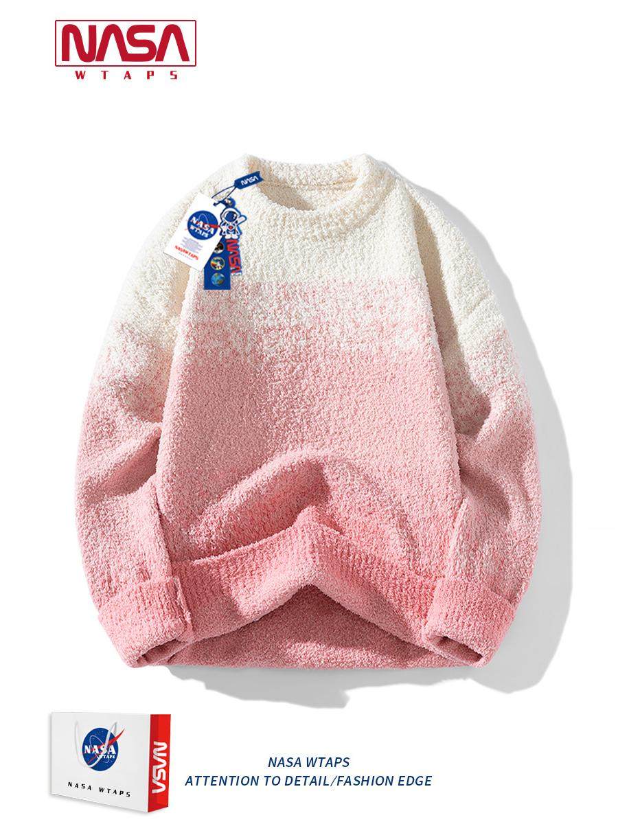 Nasa Wtaps Japanese-Style Casual Round-Neck Knit Sweater for Men, Autumn and Winter Gradient Couple Sweater, Versatile Base Layer Shirt
