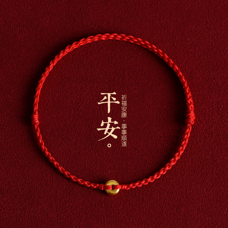 S999 Pure Gold Safety Buckle Red Rope Anklet Bracelet for Women Born in the Year of the Snake, Pure Gold Fortune Bead Braided Foot Rope