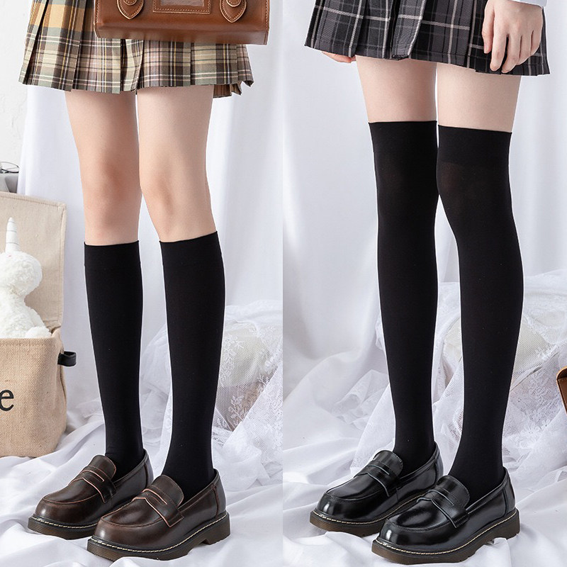 Pressure Over-The-Knee Socks for Women, Calf Socks in Black and White, Thin Long Thigh-High Socks for Spring and Summer, Slimming Jk Socks to Pair with Loafers