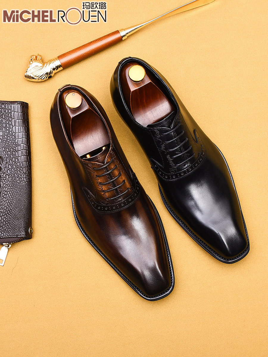 Michel Rouen High-End Luxury Brand British Men's Business Formal Wear Genuine Leather Pointed Toe Oxford Shoes Men's Shoes