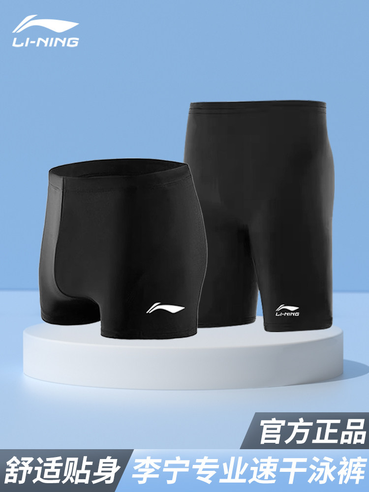 Li-Ning Men's Swimming Trunks, Quick-Drying Swimming Goggles, Swimming Cap Set, Three-Piece Set, Anti-Embarrassment, Professional Swimming