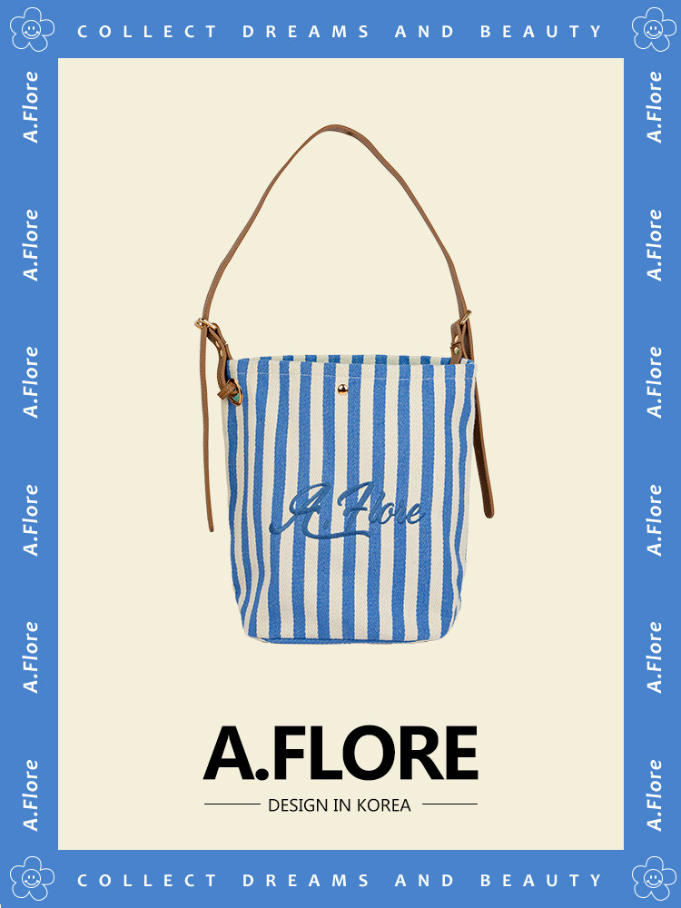 A.Flore High-Quality Canvas Bag Original Large-Capacity Striped Letter Casual Daily Commute Korean Style Lazy Style