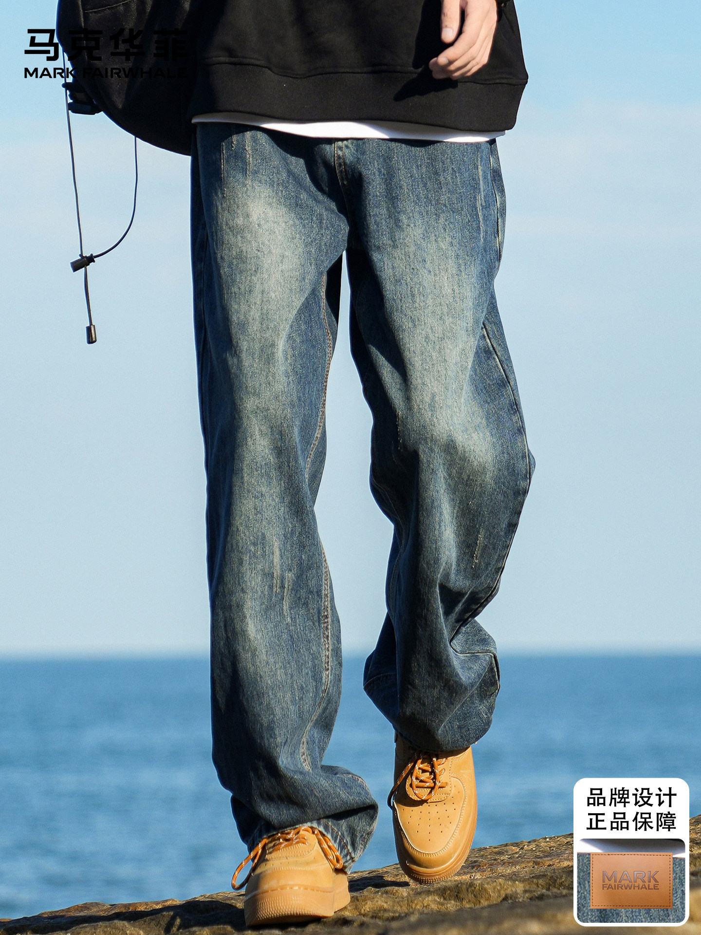 Escape from Chigang West: Vintage Washed Blue Jeans for Women, Autumn American High Street Style, Low-Waisted, Loose Straight-Leg Wide-Leg Pants