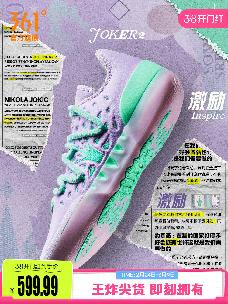Joker2 Basketball Shoes 361 Men's Shoes Sports Shoes Spring Professional Practical Wear-Resistant Non-Slip Cushioning Men's Shoes