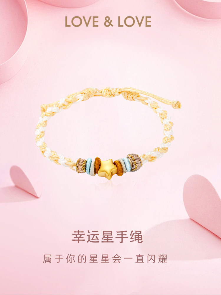 Love&Love Lucky Star Gold 999 Pure Gold Bracelet Star Transfer Bead 3D Hard Gold Bracelet Gift for Girlfriend