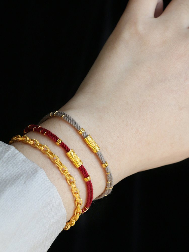 Nantingyu Little Red Book Zodiac Lucky Gold Bracelet with Pure Gold Red String for Continuous Progress N