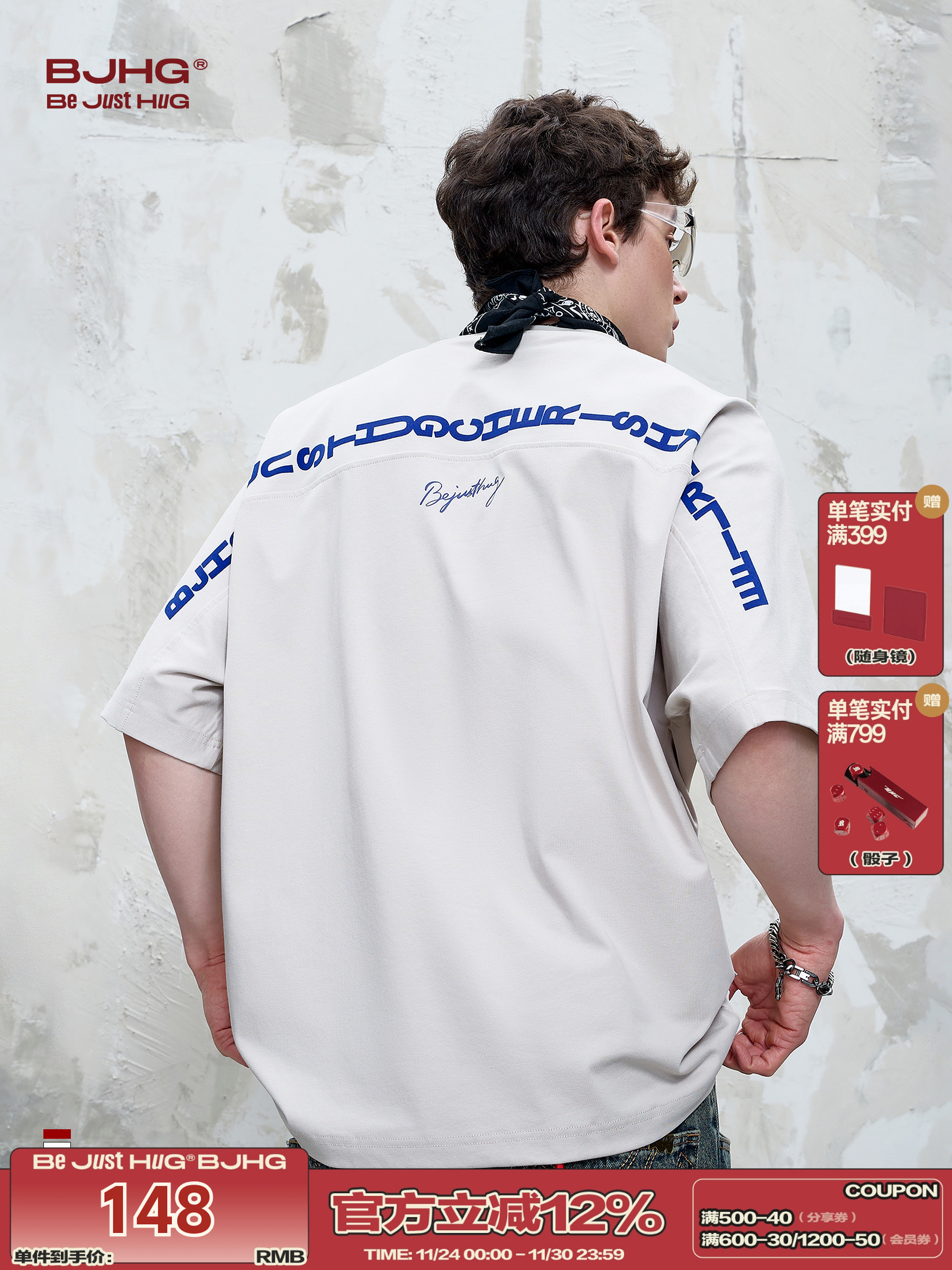 Harh "Lan Ye Yue Bai 2Nd Generation" Original French Aristocratic Design Pleated Black and White Shirt with Shoulder Pads for Men
