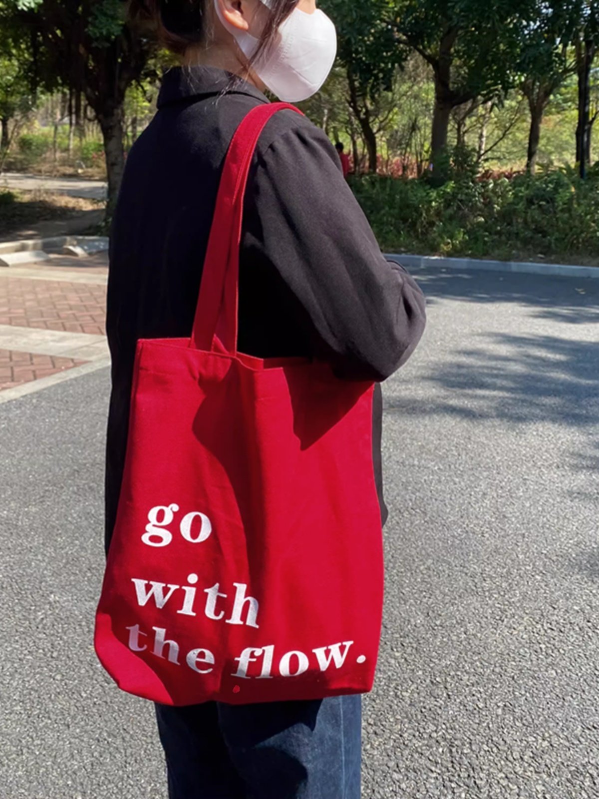 Korean Version ins Japanese-Style Red Canvas Shoulder Bag for Women, Simple Letter Design, Trendy and Exquisite Handbag, Student School Bag