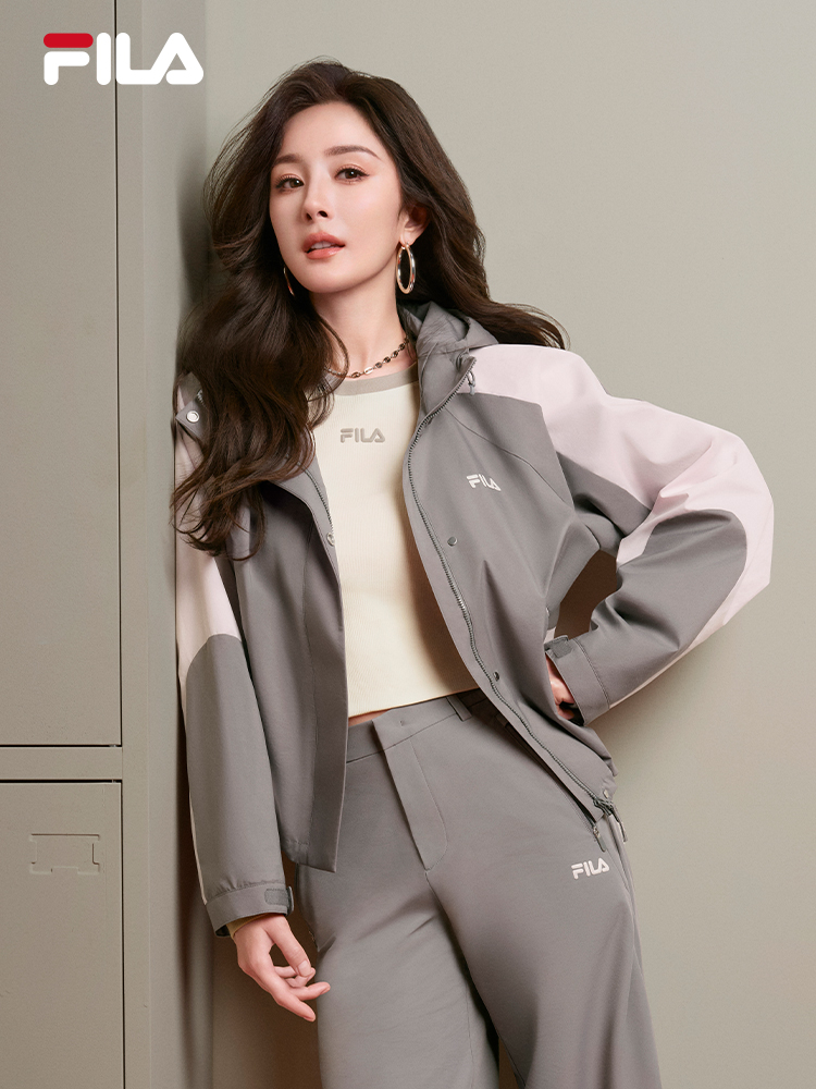 Yang Mi's Same Style Fila Official Women's Woven Jacket, New Autumn 25 Fashion Casual Loose Color-Blocked Hooded Top