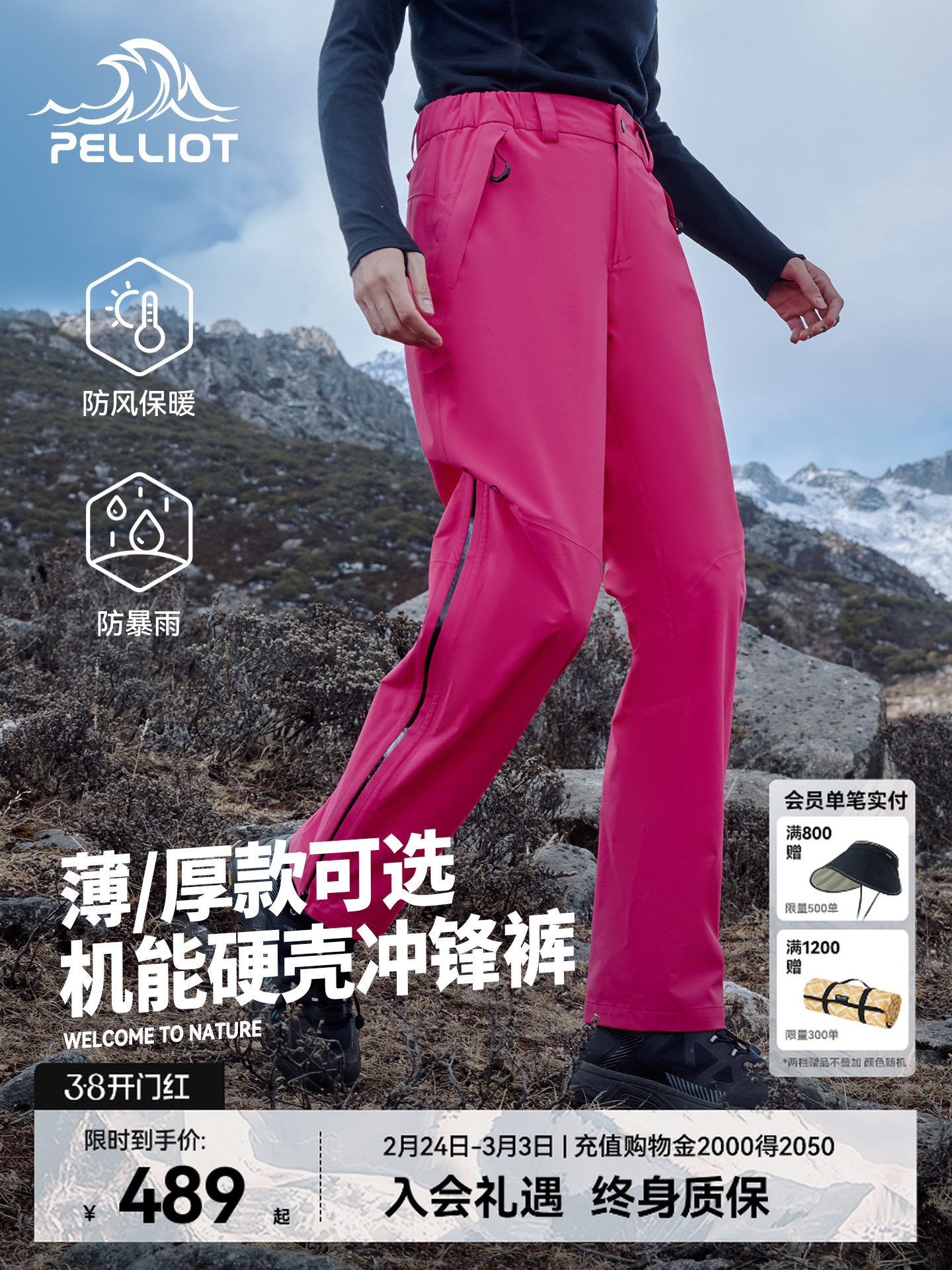 【New Color Release】Pelliot [Mountain Shell] Outdoor Digital Rose Pink Hardshell Pants for Women, Rainproof Hiking Pants