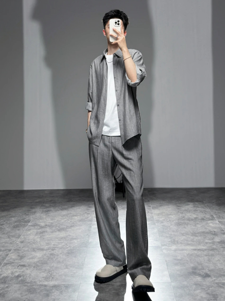 Laid's Matching Summer Lightweight Sun Protection Shirt Set, Thin Loose Cicada-Wing Pattern Jacket and Pants Two-Piece Set