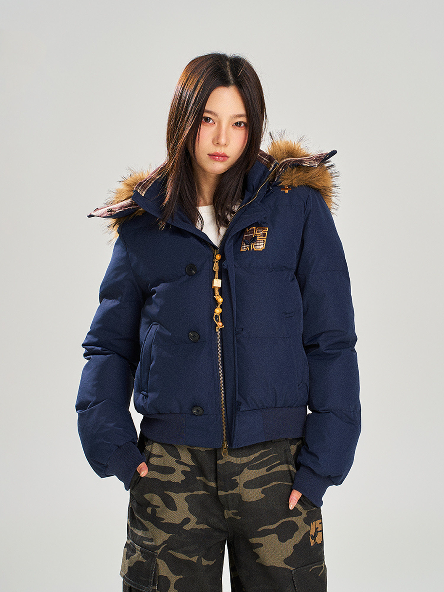 Nstnew Start Sprout Plan Beaded Retro Style Short Winter Slim Fit Thickened Warm Fur Collar Cotton Jacket